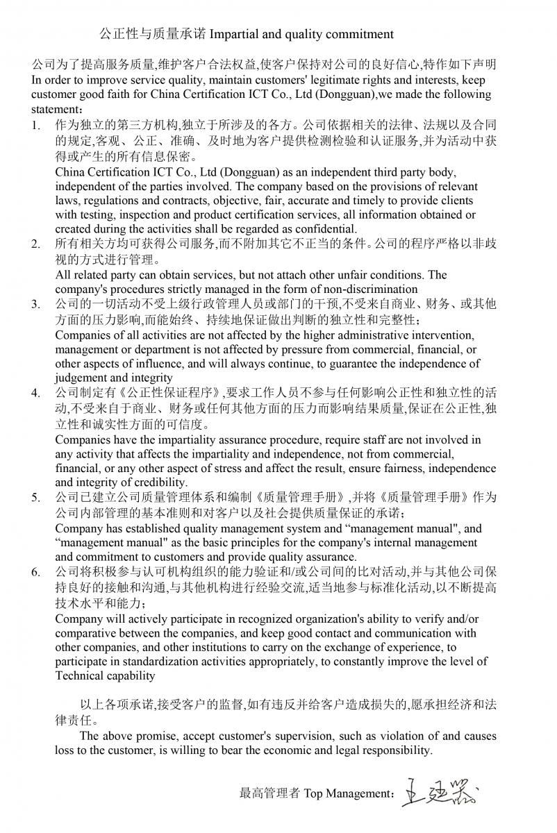 公正性和保密聲明 Impartial & Confidentiality Statement