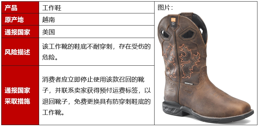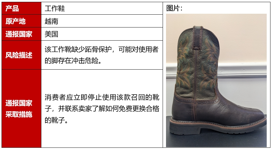 2024年1月,歐盟、美國、加拿大和澳洲共發(fā)生5例鞋類召回案例。這些召回發(fā)生在歐盟和美國,分別是因為存在傷害或化學危害被召回的。