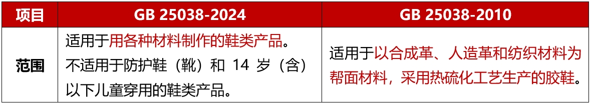 新標(biāo)準(zhǔn)適用于除防護(hù)鞋(靴)和14 歲(含)以下兒童穿用的鞋類產(chǎn)品外的用各種材料制作的鞋類產(chǎn)品,標(biāo)準(zhǔn)適用產(chǎn)品范圍更廣。