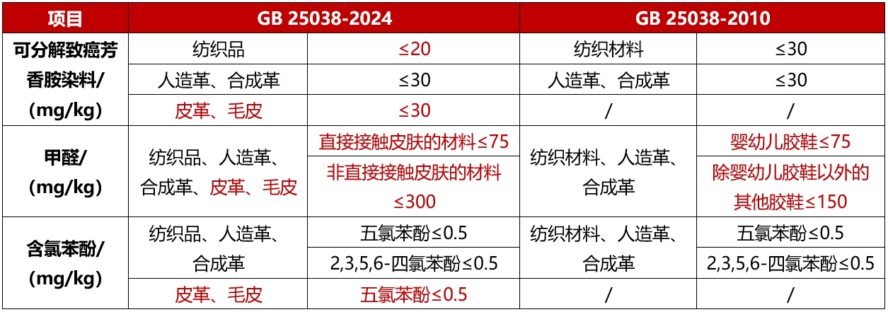 ● 更改了游離甲醛、可分解致癌芳香胺染料、含氯苯酚3項(xiàng)化學(xué)物質(zhì)的要求;