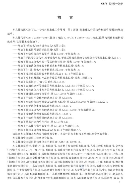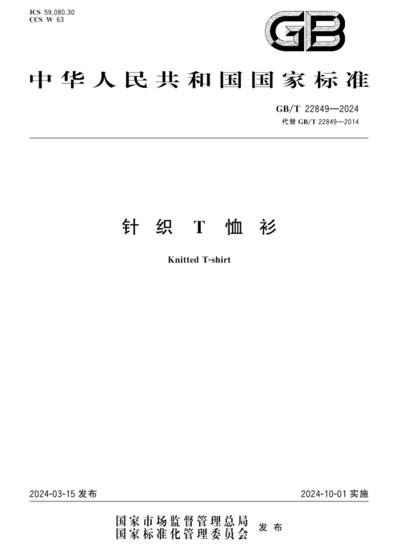 國標(biāo)GB/T 22849-2024《針織T恤衫》于2024年3月15日發(fā)布更新,將于2024年10月1日正式實(shí)施。