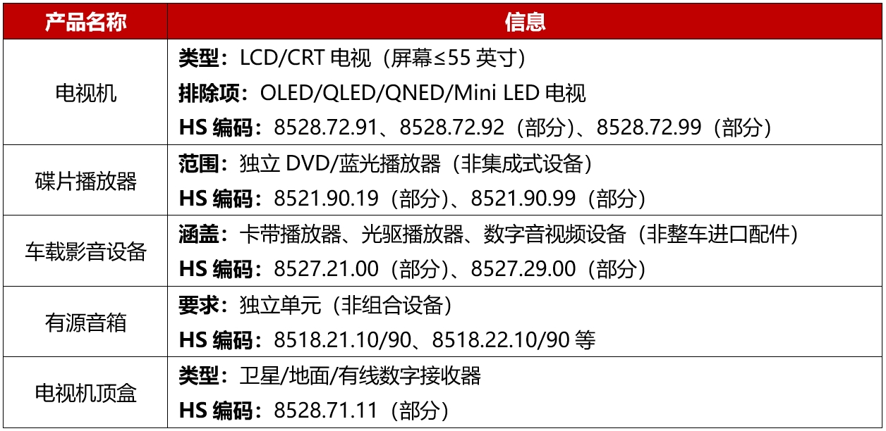 音視頻設(shè)備:額定供電電壓不超過(guò)250V交流單相或直流供電的音視頻產(chǎn)品,包括車載收放機(jī)。