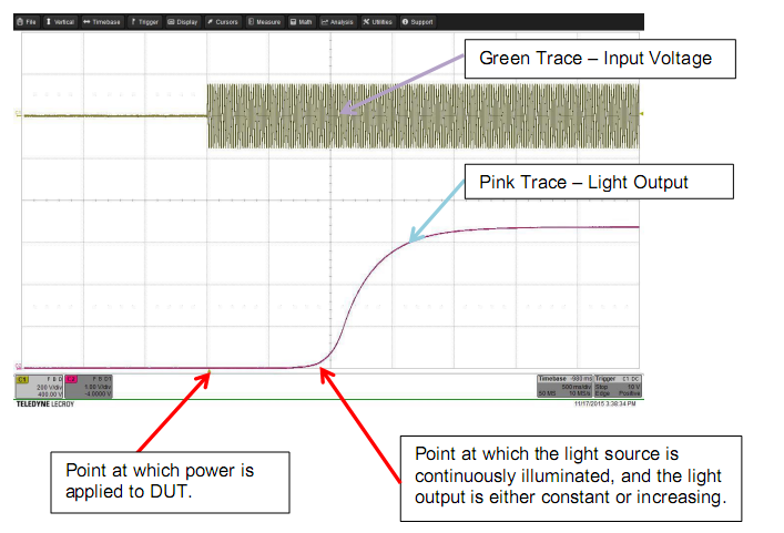啟動(dòng)時(shí)間是指給產(chǎn)品通電到光源持續(xù)發(fā)光的時(shí)間。帶有集成控制器(例如運(yùn)動(dòng)傳感器,光感器,無線控制,待機(jī)模式或可連接功能)的產(chǎn)品可禁用和繞過這些控件進(jìn)行測(cè)試。
