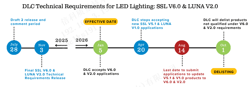 美國時間2025年7月28日,DLC發(fā)布了SSL V6.0 and LUNA V2.0第二版草稿。本次的更新基于各界對第一版草稿反饋意見以及對更多利益相關(guān)者的進一步溝通。Draft 2開放評論時間為2025年7月28日(星期一)至2025年9月5日(星期五),時間周期為六周。公眾可以對這份第二版草案提出意見并請通過以下鏈接 comments@designlights.org提交Comments。此次評論期預計將是技術(shù)要求最終發(fā)布前的最后一個階段,該技術(shù)要求計劃于 2025 年 11 月 3 日正式發(fā)布,2026 年 1 月 5 日開始可以按照新標準申請DLC。